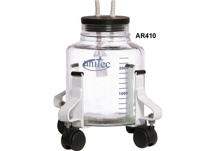 Base de ferro sobre rodízios com pintura eletrostática de alta resistência, frasco coletor de vidro autoclavável, tampa de borracha com 9cm de diâmetro, duas vias de sucção e bóia de segurança.